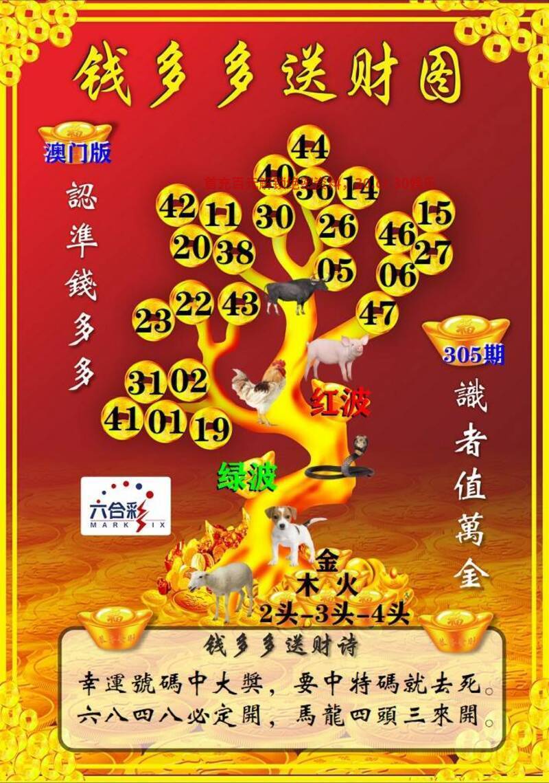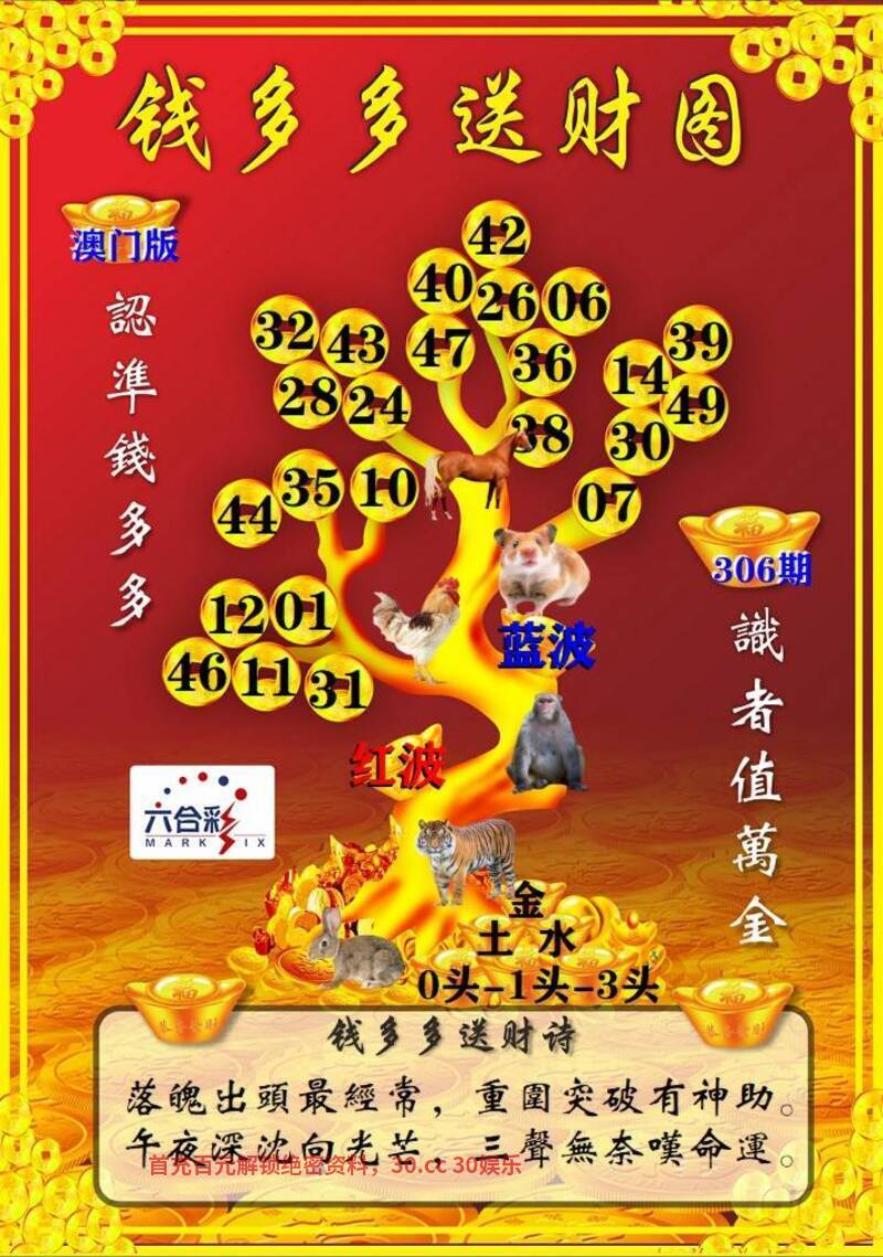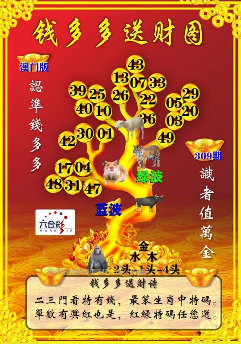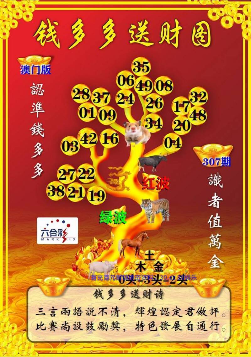 309期:【钱多多送财诗】 二三门看特有钱,最笨生肖中特码。单数有奖红也是,红绿特码任您选。 综合六肖:羊虎鼠牛龙猴 综合双波:蓝波+绿波 |